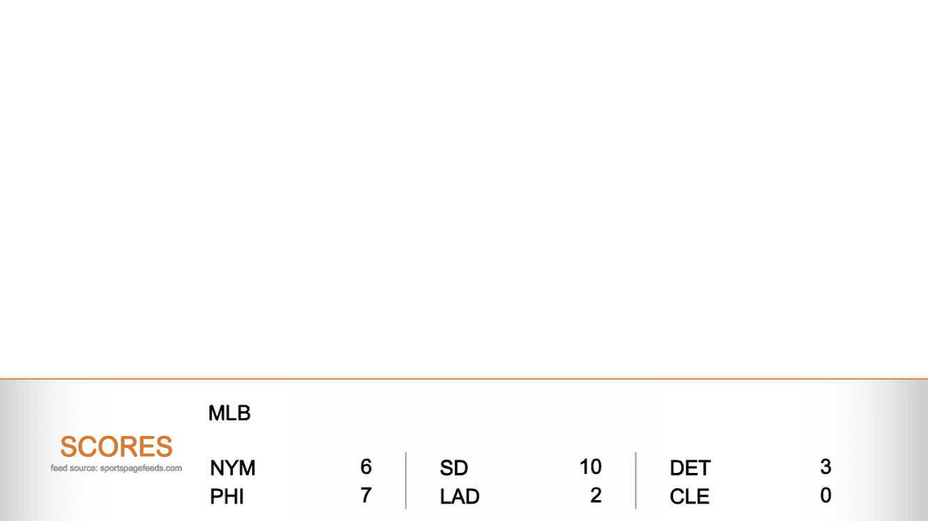 Lower-Third Scoreboard: This component displays sports scores from multiple scores leagues chosen by the user, and is designed to display horizontally on the bottom of a screen.
