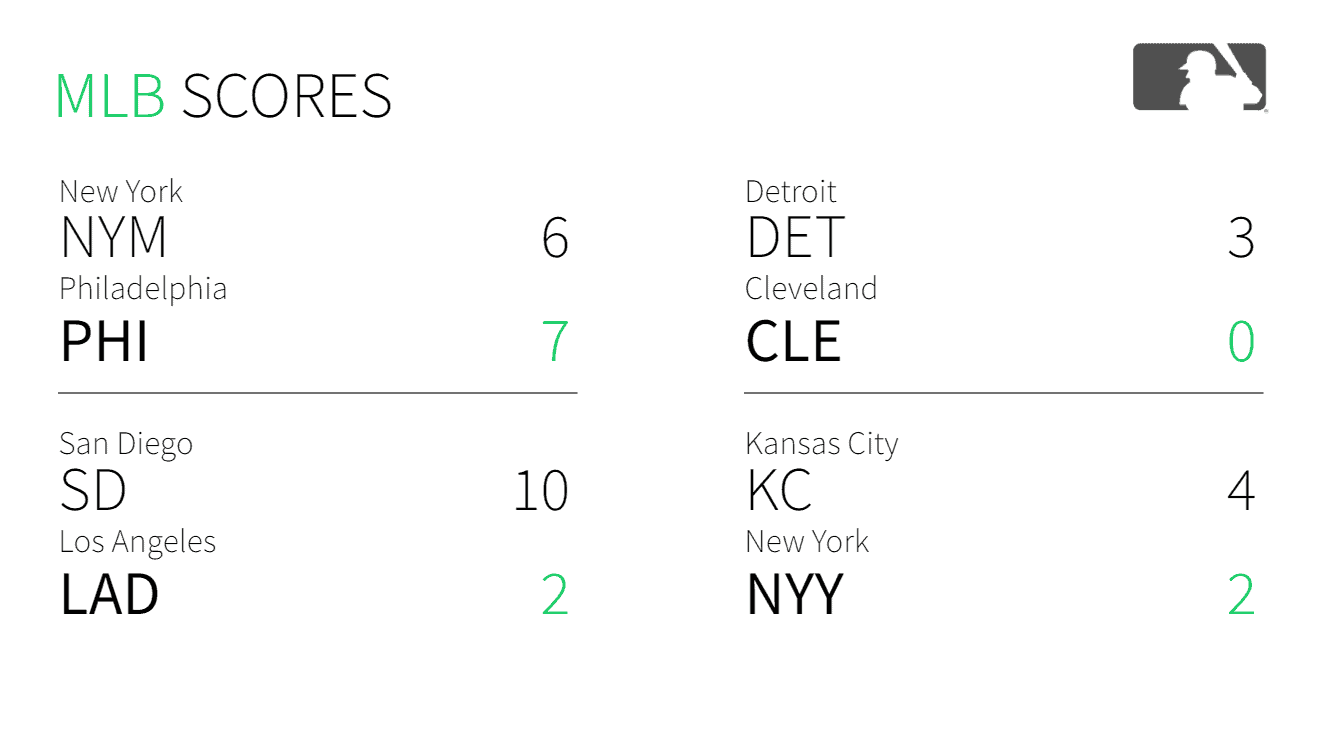Scoreboard: This component displays sports scores from multiple leagues chosen by the user, and is designed to display on an entire screen.