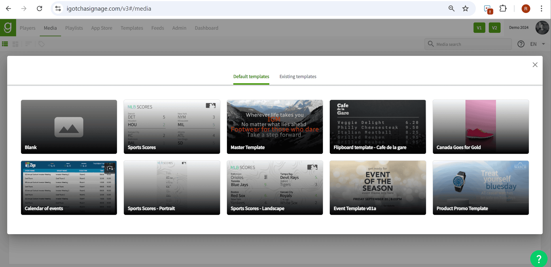 Added “Existing templates” section to the Media page.