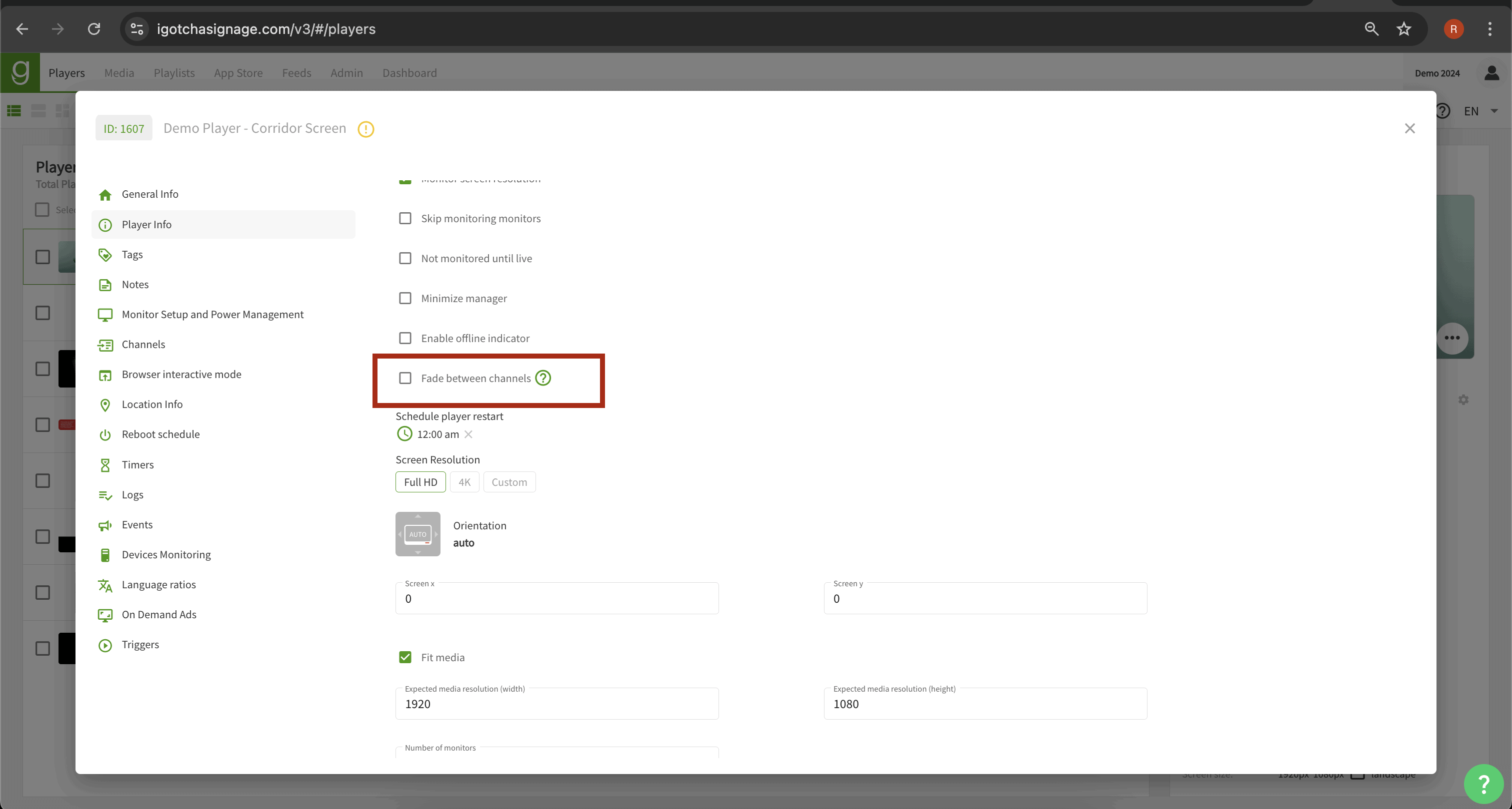 Once you’ve checked this box, your player will automatically apply the fade in/out transition whenever you switch between channels.